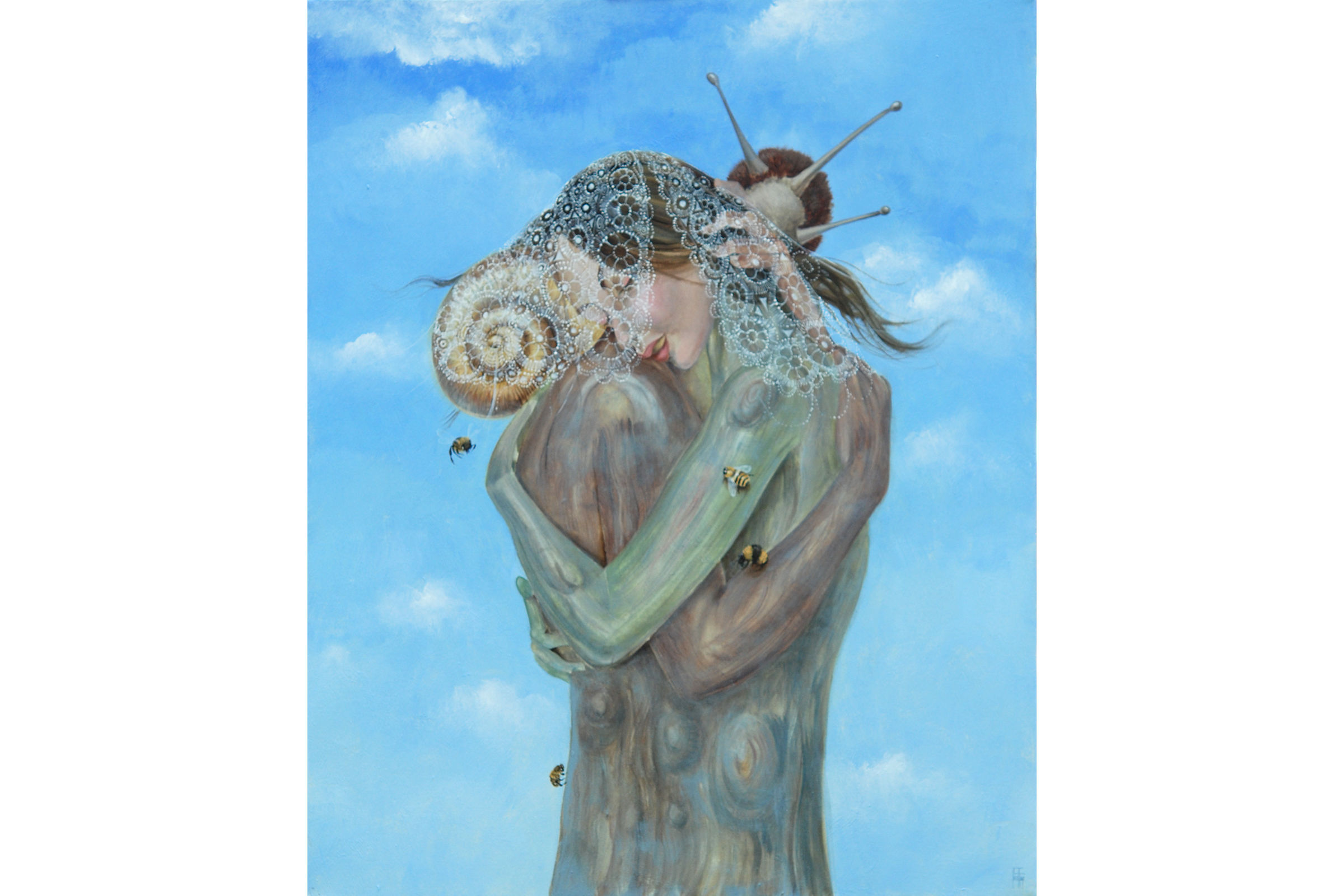 Trees' hug with nail sail and bumblebees - Acrylic on canvas - 81x100 cm - 2016 ©Christine Lucchini