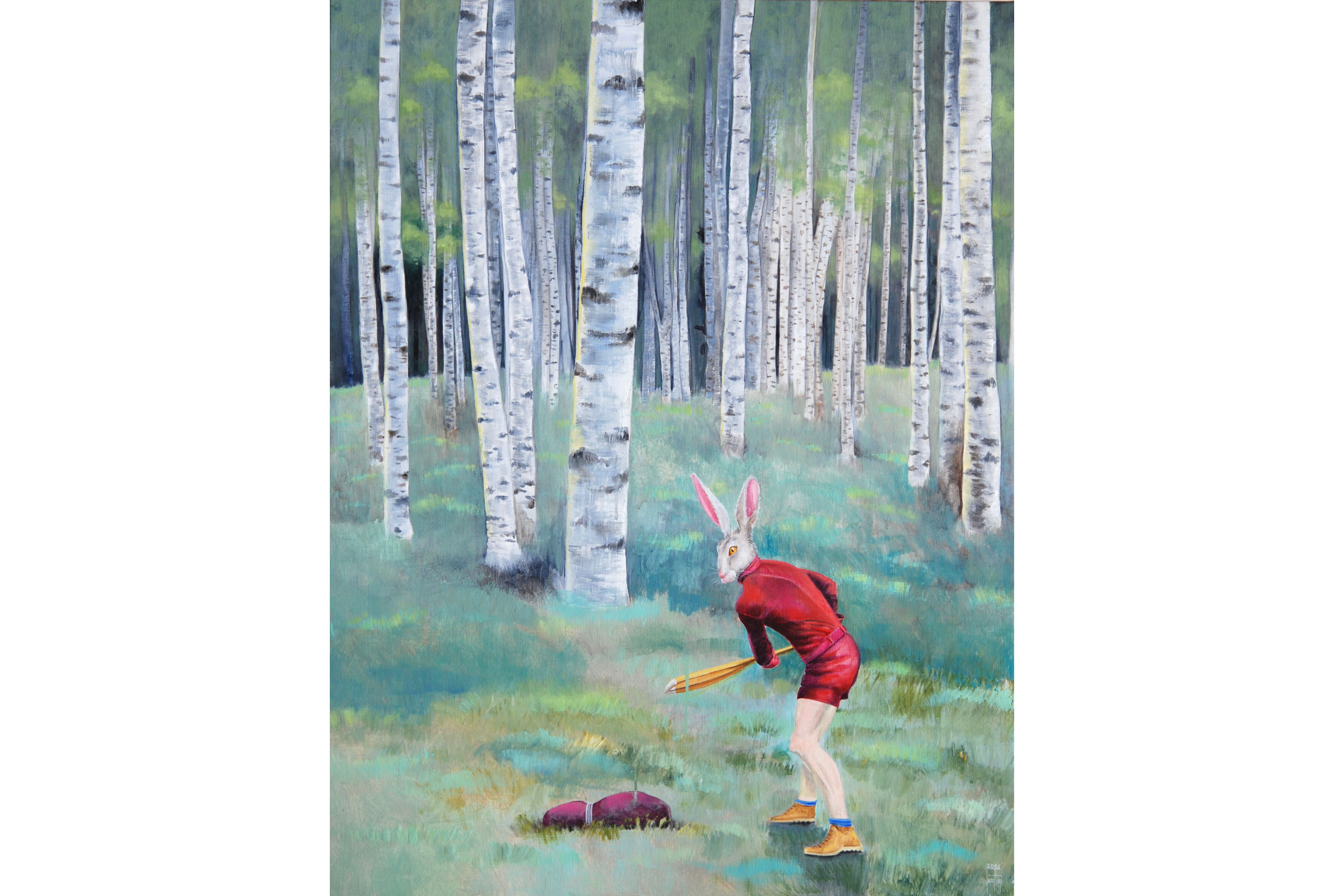In the wood for love - Le coup du lapin - Acrylic on canvas - 116x89cm - 2016 ©Christine Lucchini