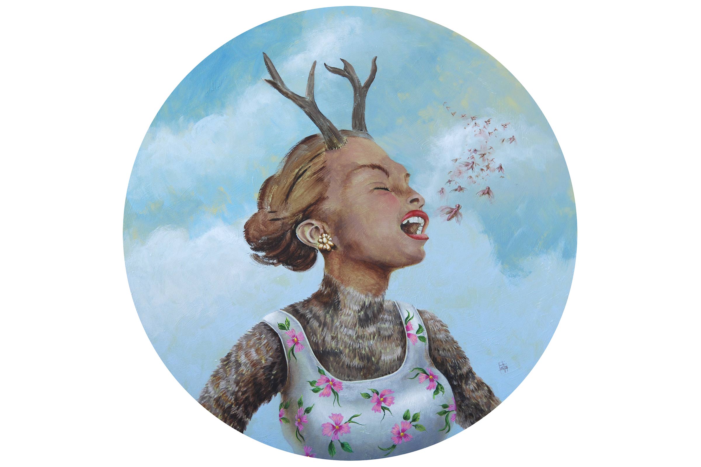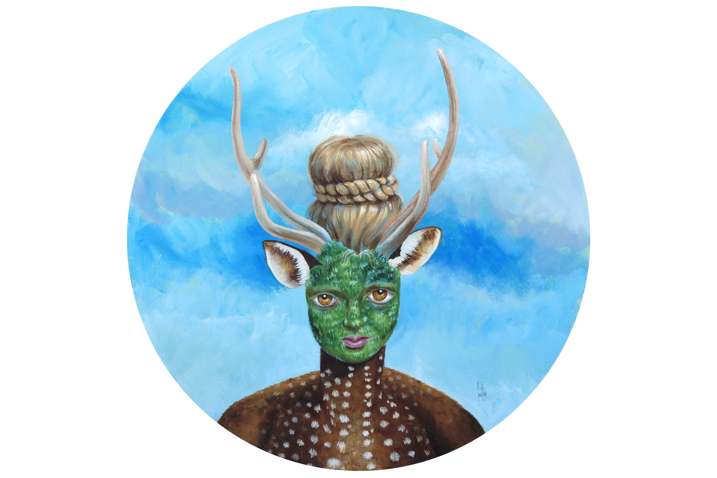 In the wood for love - The pink deer woman - Acrylic on wood - 2017 ©Christine Lucchini